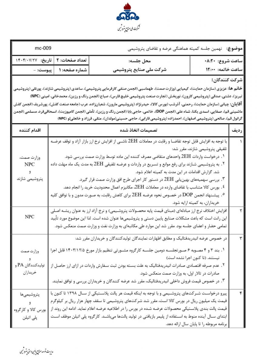 این افزایش به درخواست شرکت های پتروشیمی صورت گرفته است.